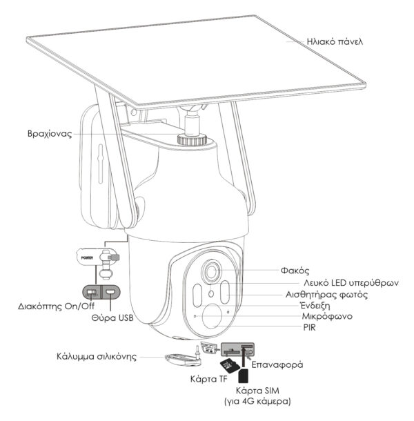 POWERTECH smart ηλιακή κάμερα κυνηγού PT-1318, 3MP, 4G, PTZ, SD, IP65