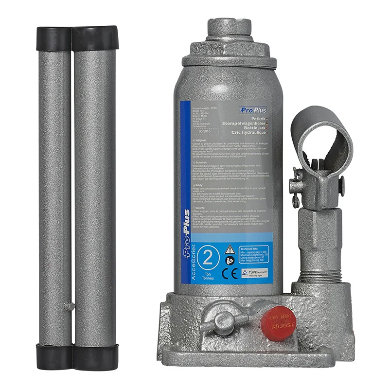 Υδραυλικός γρύλος μπουκάλας της PROPLUS ιδανικός για την ανύψωση αντικειμένων όπως αυτοκίνητα, με δυνατότητα ανύψωσης έως 30.8cm και μέγιστό βάρος 2 τόνους.