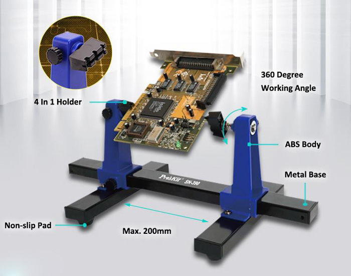 Βάση της PROSKIT για την στερέωση ηλεκτρονικών εξαρτημάτων όπως πλακέτες, κατάλληλη για εργασίες συγκόλλησης.