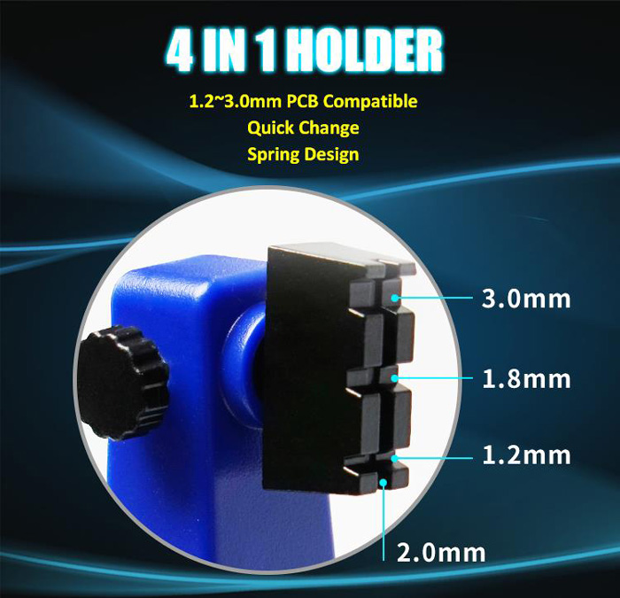 Η βάση της διαθέτει αντιολισθητικά pads, ενώ, οι βραχίονες συγκράτησης είναι περιστρεφόμενοι, προσφέροντας μεγαλύτερη σταθερότητα και ευελιξία κατά την εργασία.