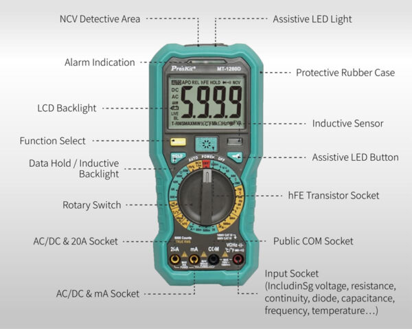 PROSKIT ψηφιακό πολύμετρο MT-1280D, 1000V DC, NVC, True RMS