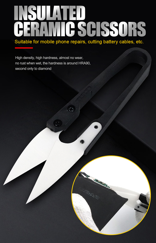 Κεραμικό ψαλίδι με μόνωση, ανθεκτικό στις υψηλές θερμοκρασίες που το καθιστά κατάλληλο για επισκευές smartphone, κόψιμο μπαταριών και καλωδίων κ.λπ.