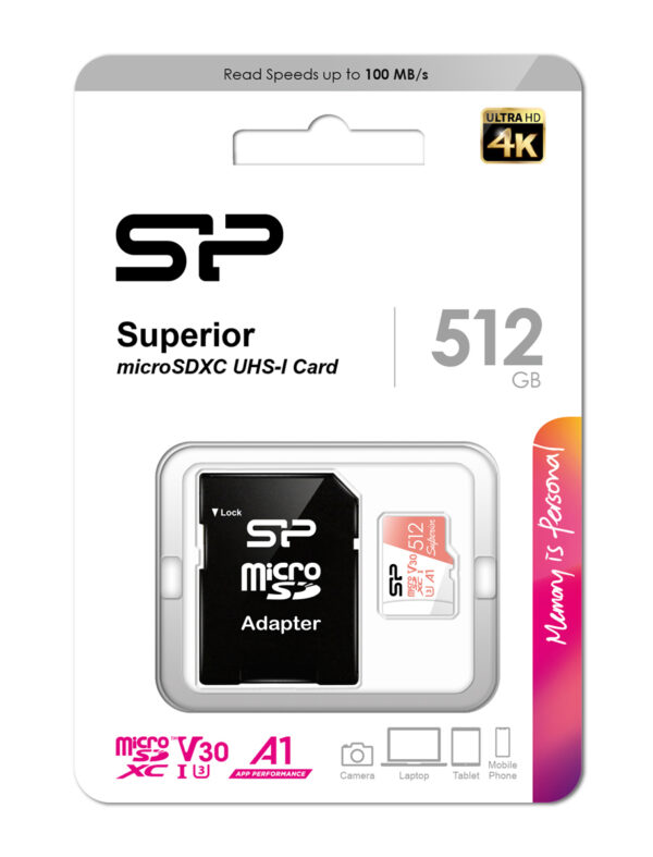 SILICON POWER κάρτα μνήμης microSDXC Superior, 512GB, C10 UHS-I U3 A1 V30