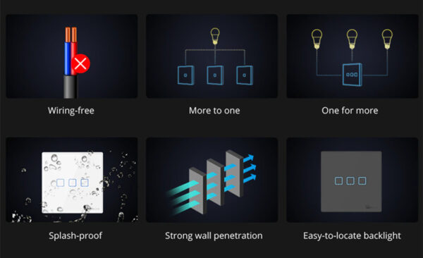 Ο smart διακόπτης τοίχου της Sonoff σας δίνει την δυνατότητα να διαχειρίζεστε απομακρυσμένα τον φωτισμό του χώρου σας μέσω του smartphone. Διαθέτει πλήκτρα αφής για χρήση ως συμβατικός διακόπτης και λειτουργεί ασύρματα με 2x μπαταρίες CR2032 (δεν συμπεριλαμβάνονται). Είναι κομψός, με επιφάνεια από tempered glass, ιδανικός για κάθε χώρο.