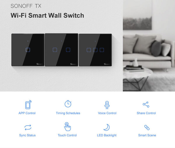 Ο Smart διακόπτης τοίχου της Sonoff σας δίνει την δυνατότητα να διαχειρίζεστε απομακρυσμένα τον φωτισμό του χώρου σας μέσω του smartphone. Διαθέτει πλήκτρο αφής για χρήση ως συμβατικός διακόπτης και υποστηρίζει λειτουργία χρονοδιακόπτη. Είναι κομψός, με επιφάνεια από γυαλί, ιδανικό για κάθε χώρο.