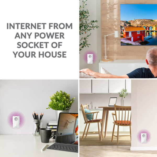 Απλώς συνδέστε την μια μονάδα Powerline με το modem σας μέσω θύρας Ethernet και τοποθετήστε τις άλλες μονάδες σε οποιαδήποτε πρίζα του δωματίου της επιλογής σας, για να αποκτήσετε εύκολα και γρήγορα πρόσβαση στο διαδίκτυο.