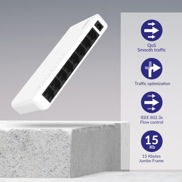 -Ethernet Ports: 8x Gigabit RJ45 Ports 10/100/1000 Mbps, Support Auto MDI/MDIX