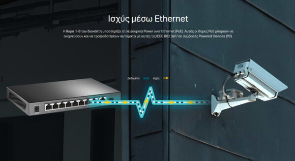 -8x θύρες PoE+, δεδομένα & ισχύς μπορούν να μεταφερθούν με ένα μόνο καλώδιο