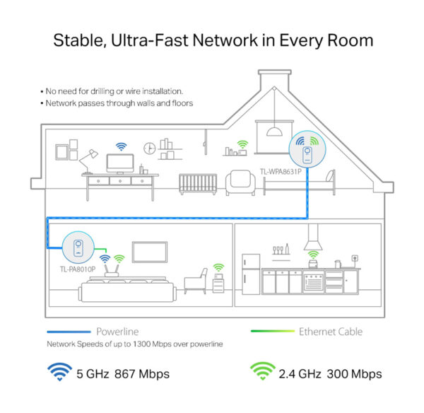 -HomePlug AV2 Standard: Παρέχει εξαιρετικά γρήγορες ταχύτητες μεταφοράς powerline έως 1300 Mbps