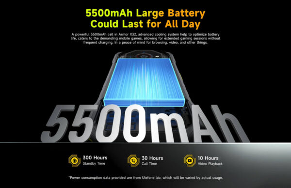 Με μπαταρία 5500mAh, το Armor X32 προσφέρει μεγάλη αυτονομία, που θα σας απαλλάξει από τις συχνές αναζητήσεις τροφοδοσίας.