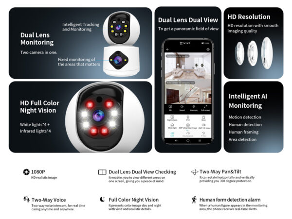 3MP, dual lens, Wi-Fi, PTZ, SD